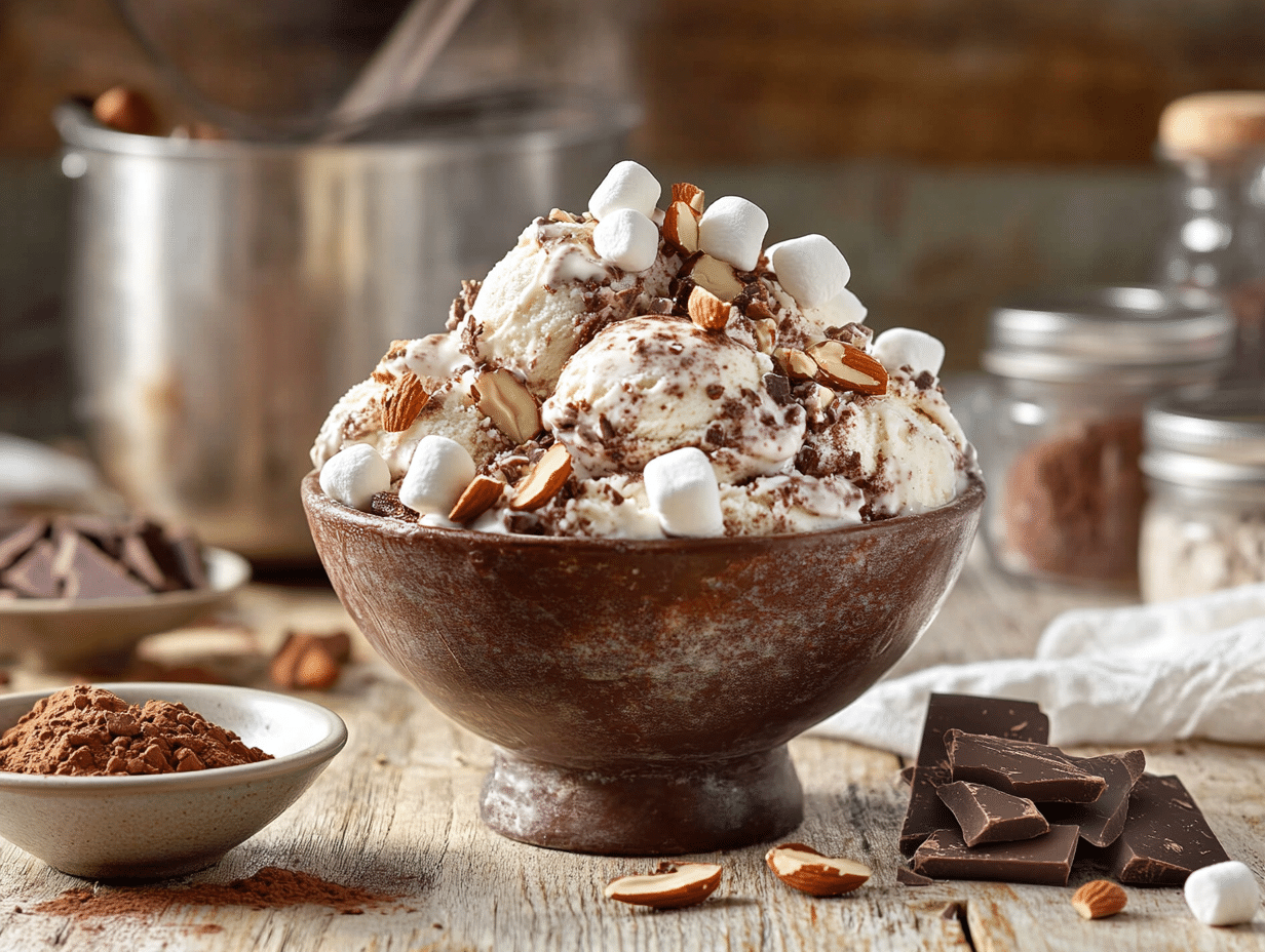The process of making Rocky Road Ice Cream invites creativity as well as a bit of patience. Starting with an ice cream base that is cooked to perfection, chilled thoroughly, and then churned, the result is a luxuriously smooth texture. Folding in the mix-ins right before freezing ensures that every bowl is filled with the signature “rocky” elements. For those looking for a personalized twist, there’s room to experiment: swirls of caramel, hints of espresso, or using walnuts or pecans instead of almonds can open new doors of taste while staying true to the original’s spirit.