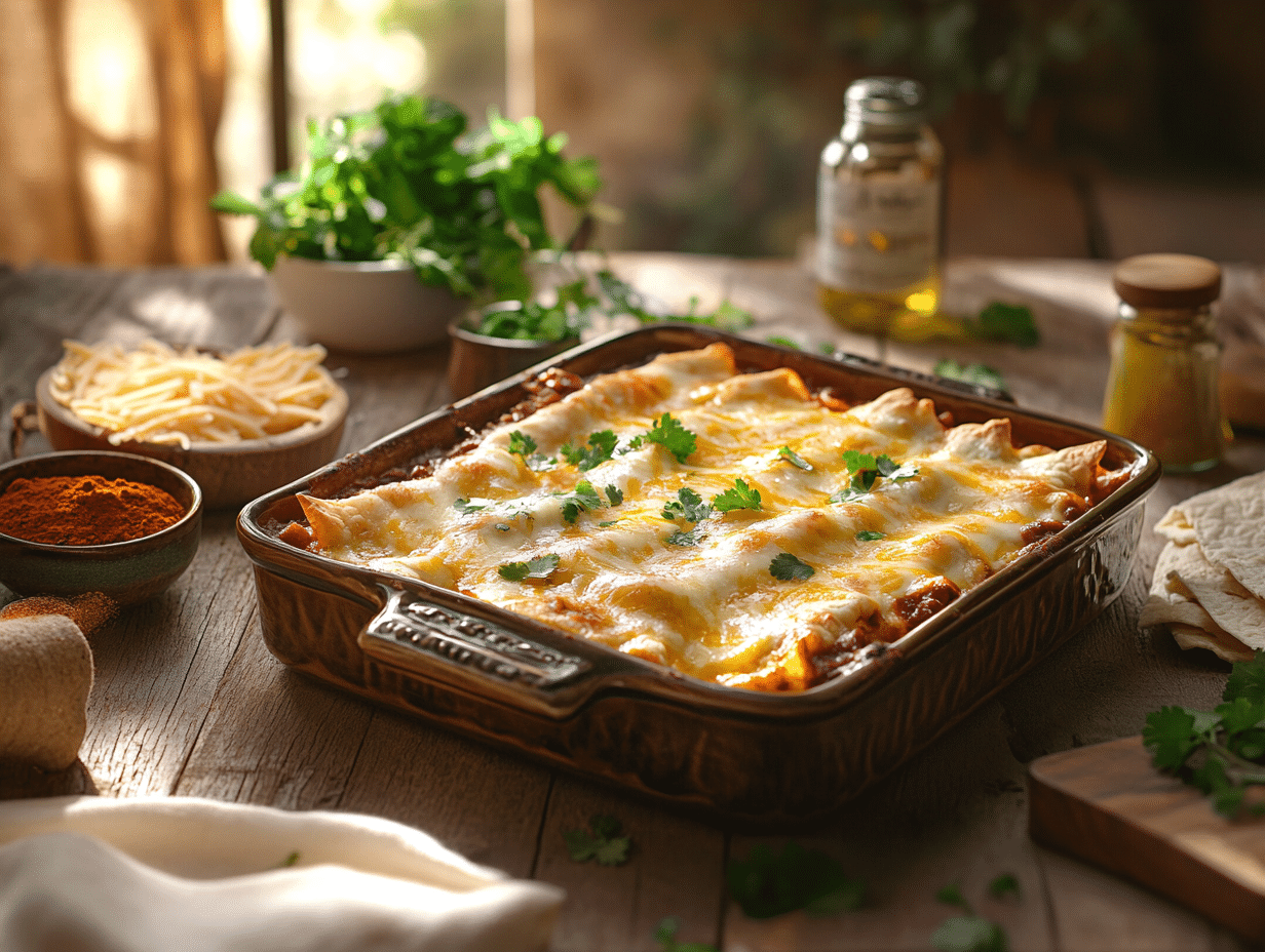 While Mexican food is often celebrated for its bold and fiery kick, these enchiladas can easily be adjusted for spice levels, making them suitable for both adults and children at the table. A garnish of fresh cilantro introduces a pop of color and freshness, while optional accompaniments such as sour cream, guacamole, or a side of Mexican rice round out the meal beautifully.