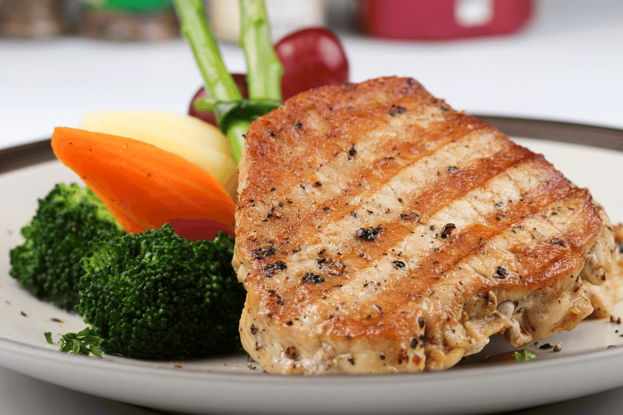 - Remove the pork steak from the marinade. Pat dry. Throw out the leftover marinade.