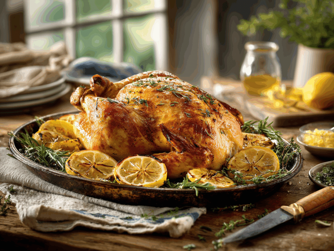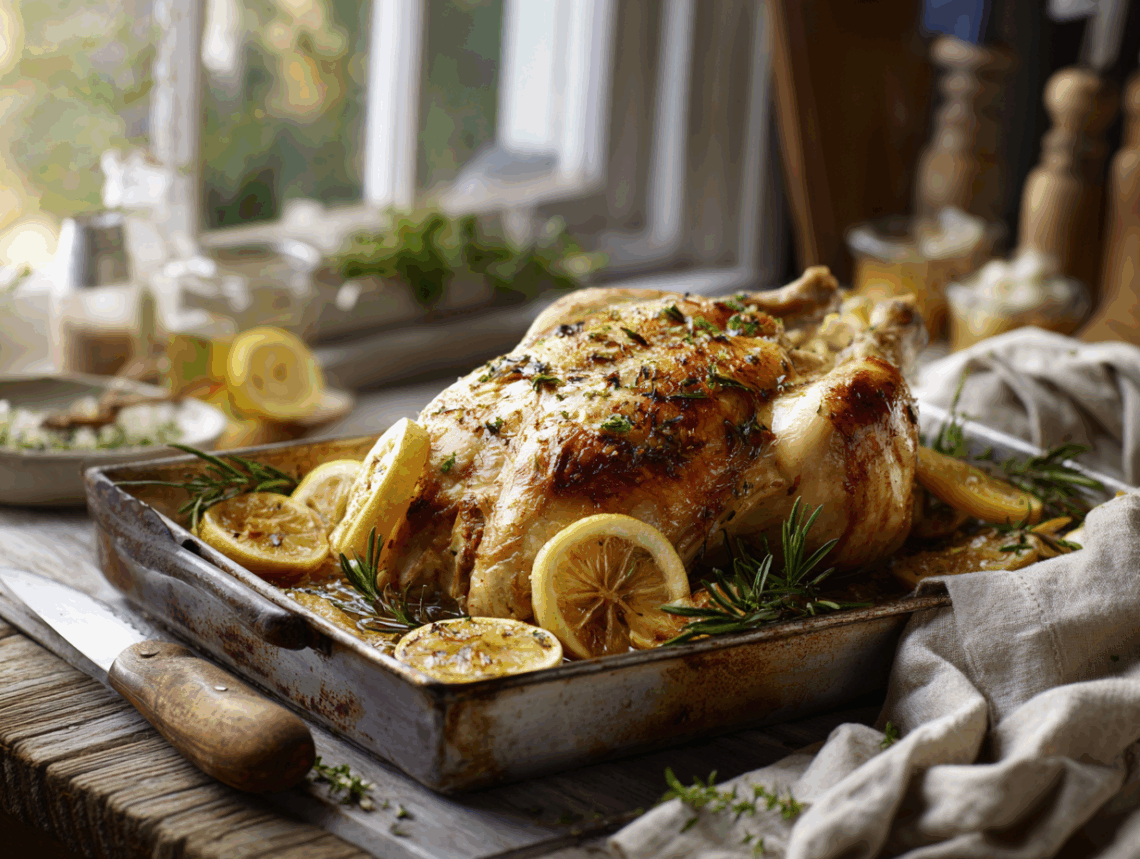 The Lemon Herb Roasted Chicken recipe is rooted in the sun-drenched flavors of Mediterranean cuisine, where simple ingredients—when treated with care—create dishes that are both elegant and wholesome. In this version, the dish draws particular inspiration from the southern coasts of Greece and Italy, where lemon trees line the countryside and fresh herbs grow in abundance. Every element of this recipe has been carefully selected to create a harmonious balance of brightness, depth, and aroma.
