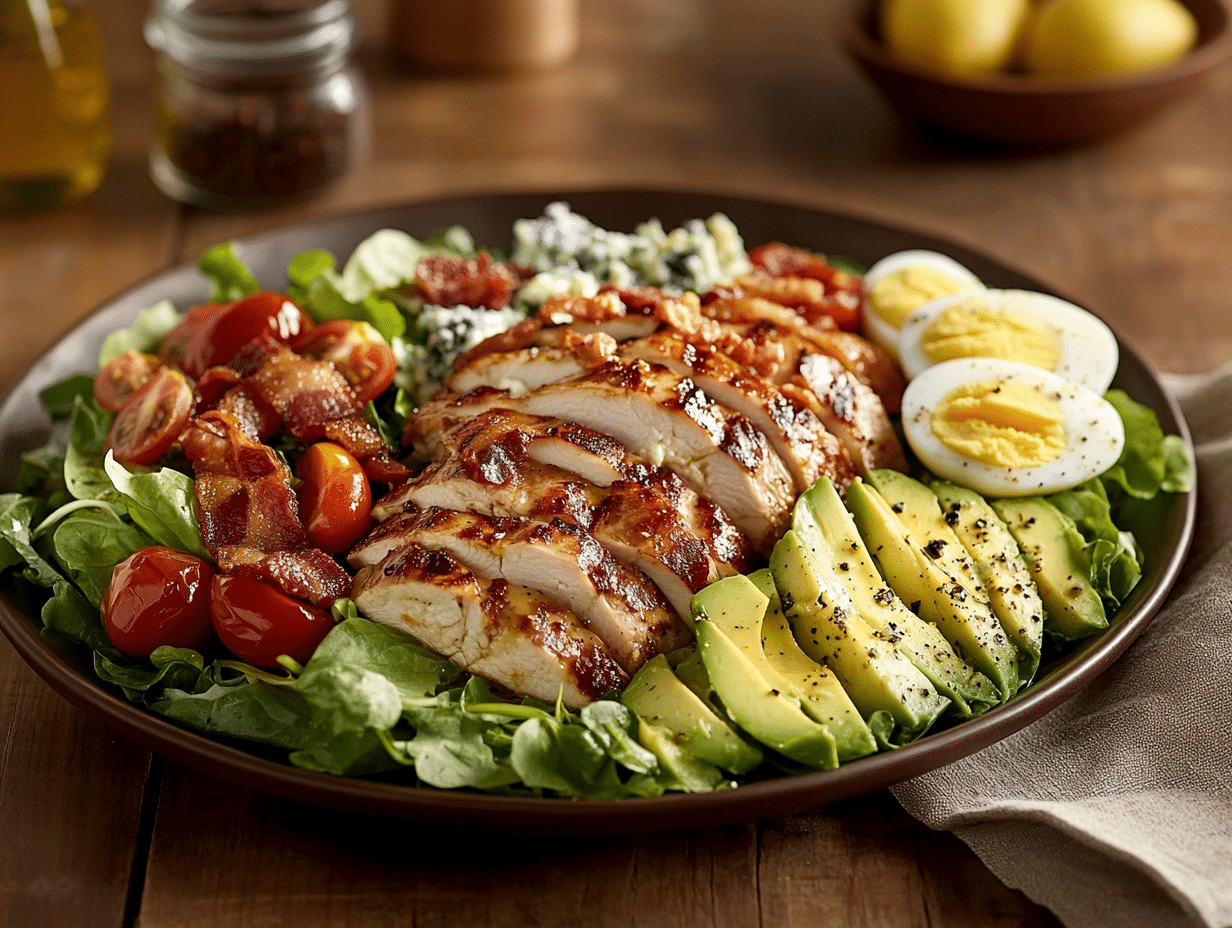 The Cobb Salad is an icon of American cuisine, a beautifully layered and satisfying dish with a rich history dating back to the 1930s. Originally created at the legendary Brown Derby restaurant in Hollywood, California, the Cobb Salad was the result of a late-night kitchen improvisation by restaurant owner Robert Cobb. As the story goes, Cobb, looking for a hearty meal, gathered a mix of ingredients—lettuce, tomatoes, crisp bacon, grilled chicken, hard-boiled eggs, avocado, blue cheese, and a zesty dressing—creating a dish that quickly became a menu staple.
