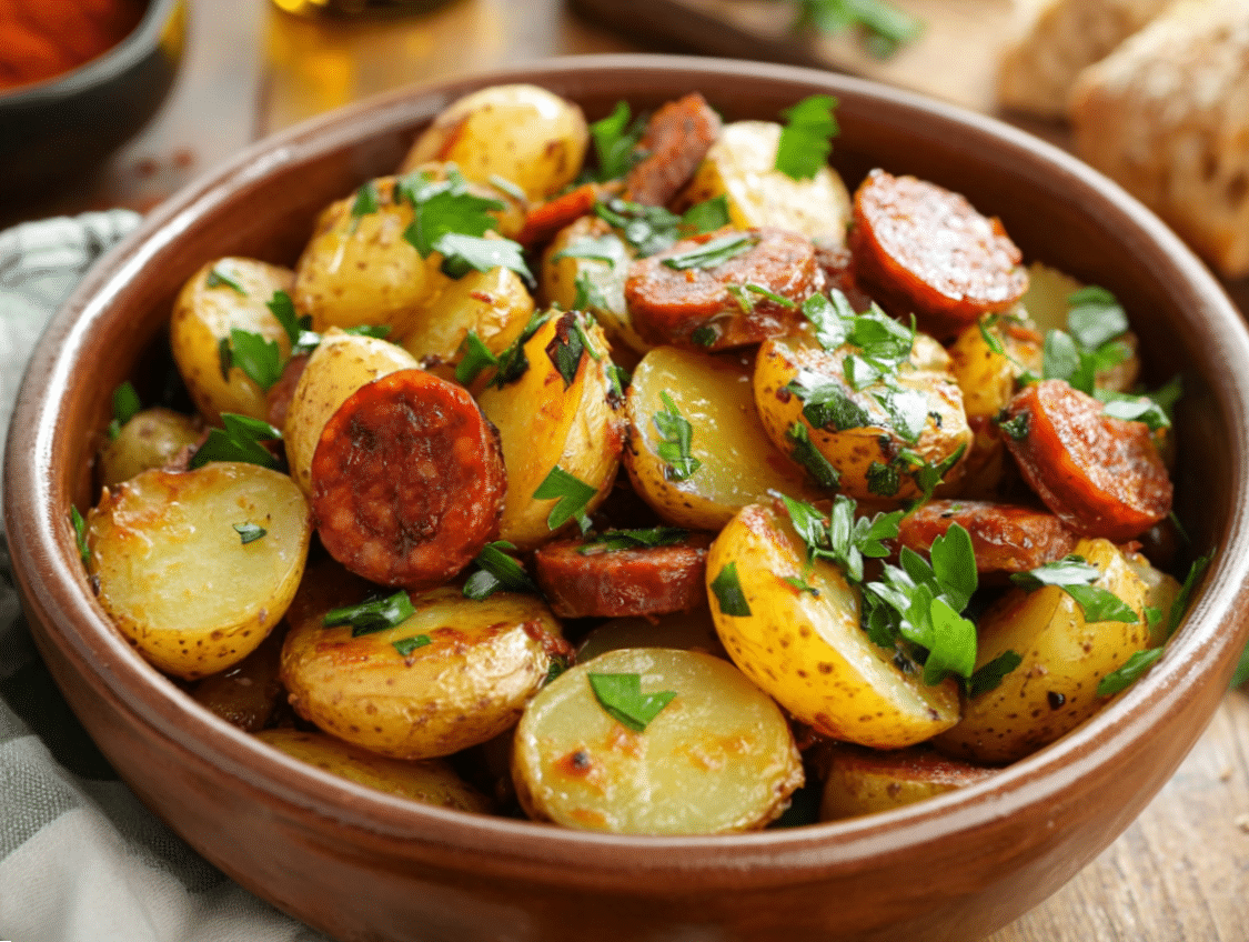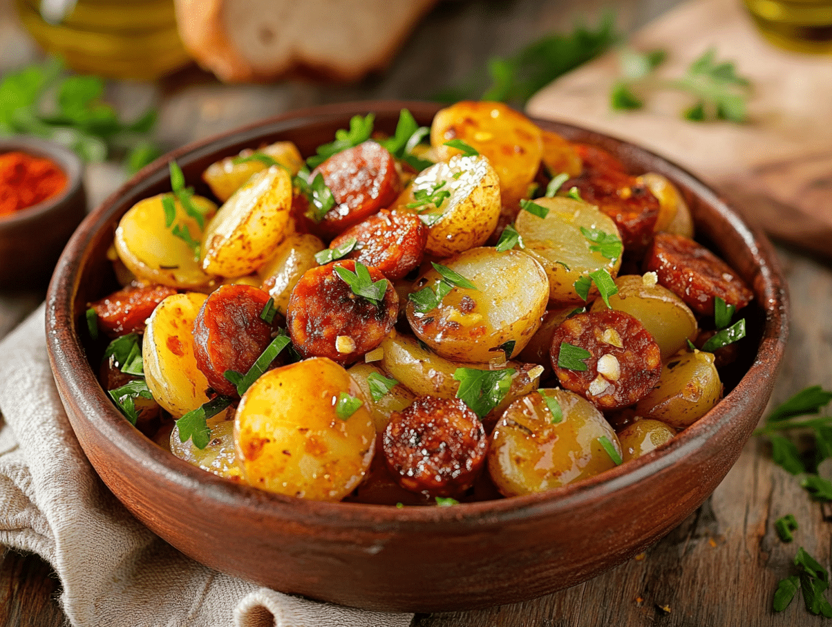 Spanish cuisine is deeply rooted in the country’s rich history and regional diversity, with ingredients that highlight the natural bounty of the land and sea. This Spanish Chorizo and Potato Salad is a perfect example of this culinary tradition—simple, rustic, and packed with bold, smoky flavors. It brings together the hearty comfort of potatoes and the intense richness of Spanish chorizo in a dish that is both versatile and satisfying.