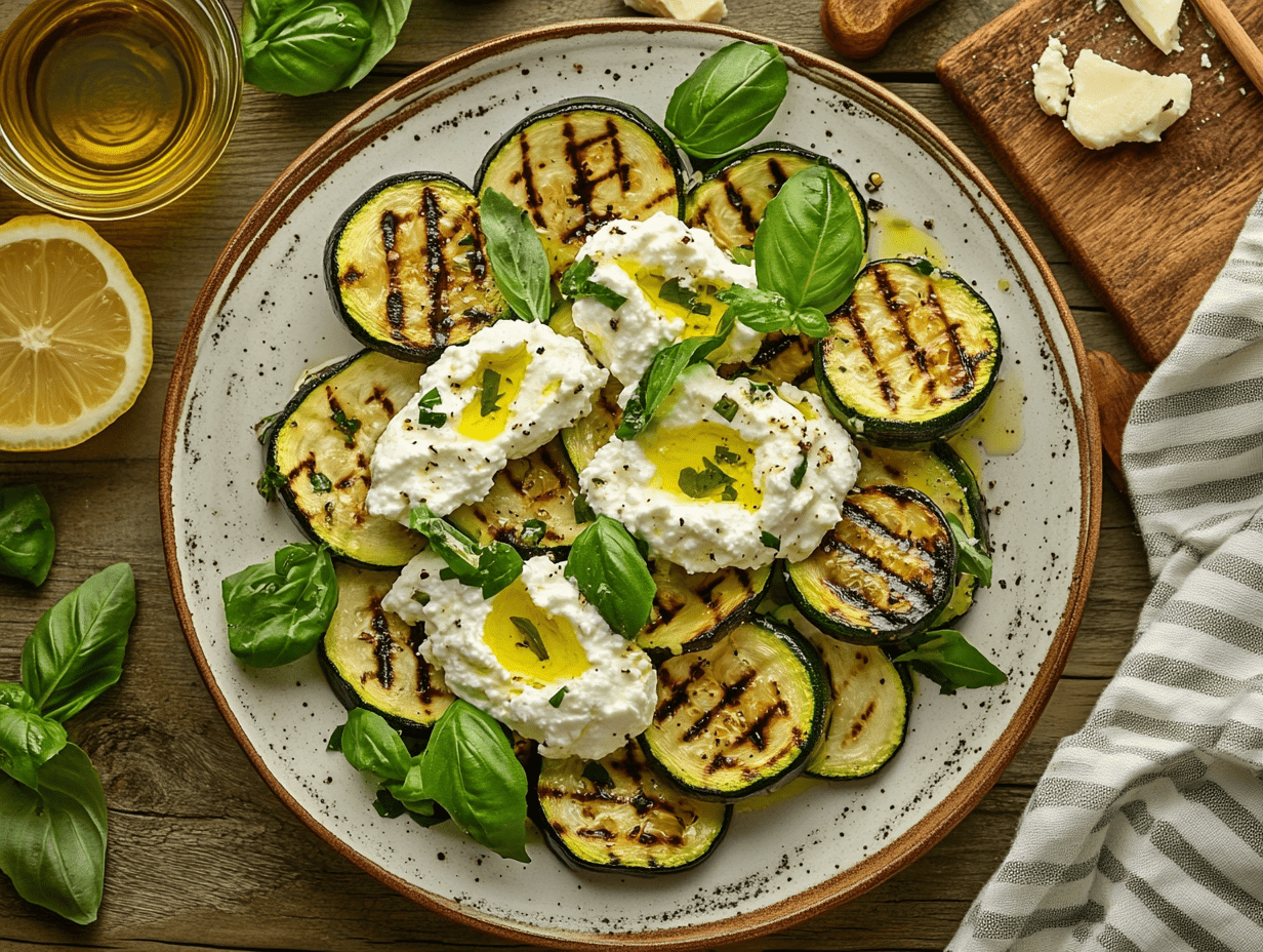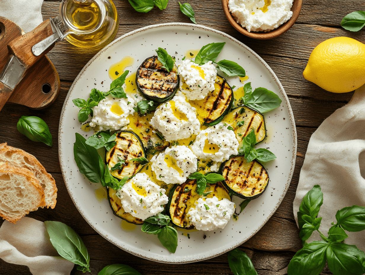 By combining smoky zucchini, creamy ricotta, bright citrus, and fragrant herbs, this Grilled Zucchini and Ricotta Salad encapsulates the essence of Mediterranean simplicity—letting each ingredient shine while creating a dish that’s greater than the sum of its parts.