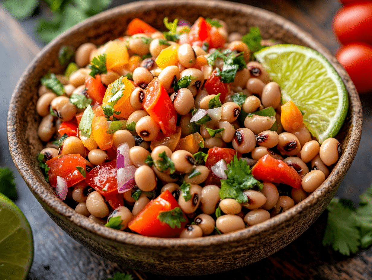 Black-eyed peas are not only flavorful but also packed with health benefits—they are high in protein, fiber, and important vitamins and minerals, making this salad a fantastic option for vegetarians, vegans, or anyone looking to include more plant-based proteins in their meals. When paired with healthy fats from olive oil and the antioxidants found in tomatoes and bell peppers, this dish becomes a well-rounded, nutrient-rich addition to any diet.