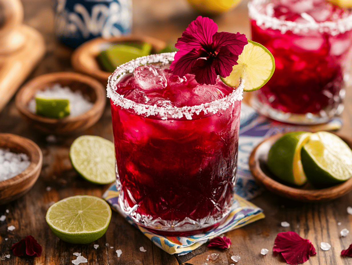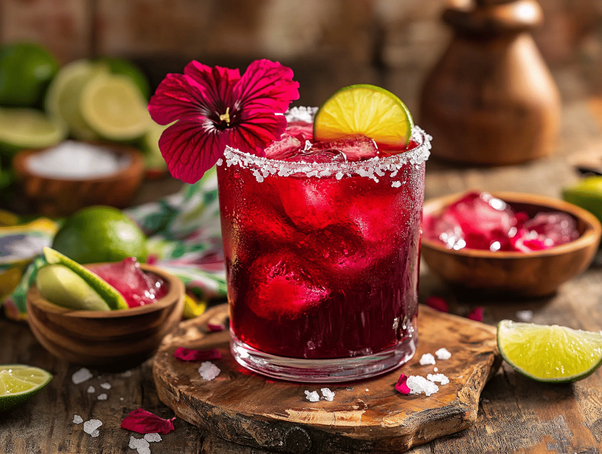 The Hibiscus Margarita is no ordinary cocktail; it’s an exquisite blend of sophistication and flair, inspired by the radiant beauty and distinct tartness of the hibiscus flower. This drink takes the iconic margarita—a beloved staple in Mexican cocktail culture—and reimagines it with a floral twist while maintaining its vibrant essence. The result? A bold, refreshing cocktail defined by its striking ruby-red hue and its harmonious interplay of sweet, tart, and floral flavors.