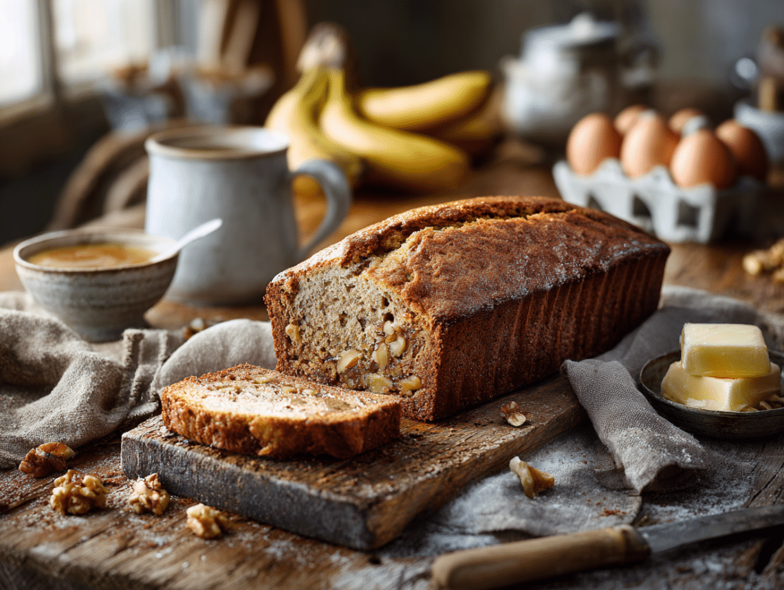 El pan de plátano ha sido durante mucho tiempo uno de los alimentos reconfortantes más queridos de la repostería estadounidense. Arraigado en la frugalidad durante la Gran Depresión, cuando desperdiciar comida -sobre todo plátanos demasiado maduros- no era una opción, el clásico pan de plátano se hizo popular como deliciosa solución a un problema práctico. A lo largo de los años, ha pasado de ser una receta sencilla y utilitaria a un lienzo versátil para la creatividad y el refinamiento. La versión que presentamos aquí, a la que cariñosamente llamamos el «Mejor Pan de Plátano», combina la tradición ancestral con una cuidada técnica culinaria, creando un pan húmedo y rico en sabor que eleva al humilde plátano a la categoría de estrella.
