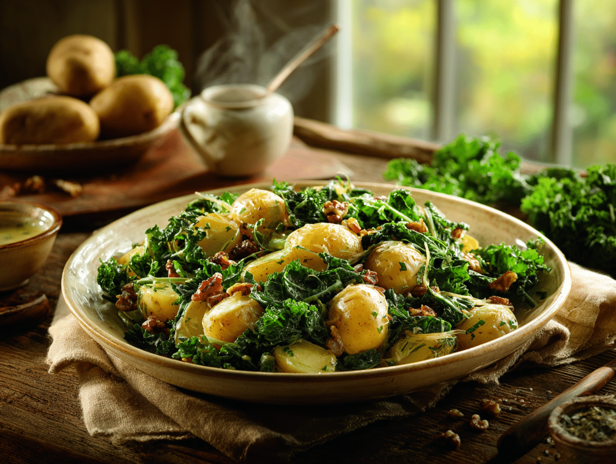 The Irish Kale and Potato Salad is the perfect dish for transitional seasons—warm and substantial enough to comfort on chilly evenings, yet bright and balanced enough for spring and summer meals. Served warm or at room temperature, it shines as a flavorful lunch on its own, or as a savory side dish alongside roasted meats, fish, or even soft-poached eggs.
