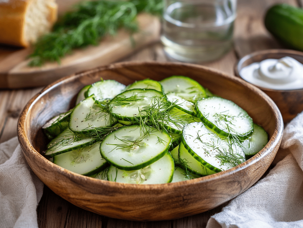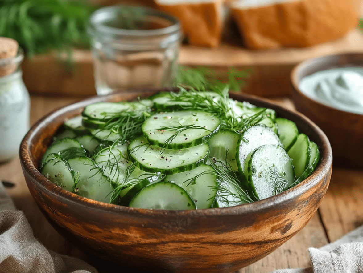 Dressing plays a crucial role in bringing out the best in this recipe. The combination of white wine vinegar (or apple cider vinegar), sugar, salt, and black pepper creates a delicate balance of tanginess and sweetness. This dressing is based on traditional Scandinavian vinegary dressings, which help enhance the crispness of the cucumbers while mellowing their moisture content.